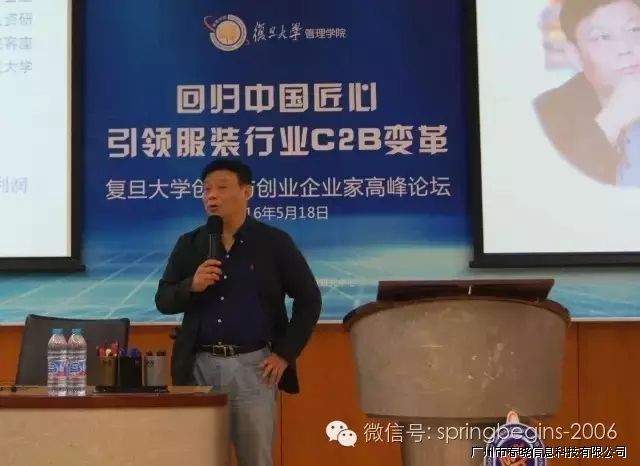 5月18日下午13:00,万众期待的“引领服装行业C2B变革,创新与创业企业家高峰论坛”在复旦大学管理学院如期召开并于下午17:30完美落幕,本次论坛由复旦大学管理学院主办、3044永利集团(中国)有限公司协助举办,会场内座无虚席,200余人到场参会。论坛邀请了多位资深学者、成功企业家等重磅嘉宾纯干货主题演讲,受到广泛好评,会议进行中掌声持续响起。